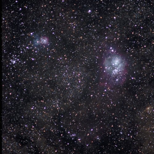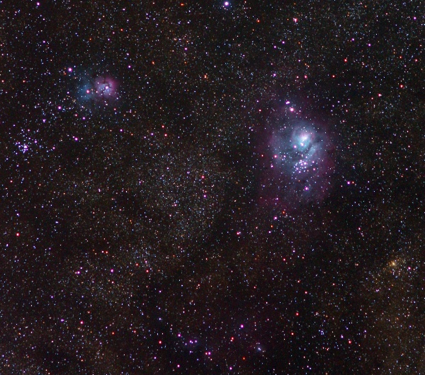 NGC 6523 e NGC 6514 – Nebulosas da Lagoa (M8) e Trífida (M20)