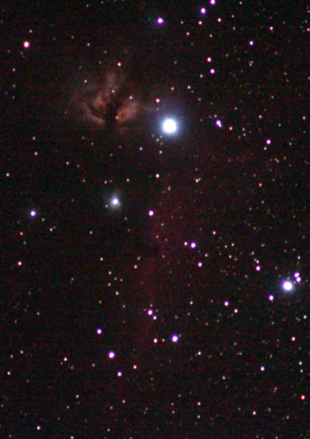 Nebulosa IC434 (com Cabeça do Cavalo B33) e NGC 2024 (Flame neb.) em Orion